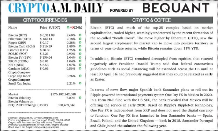 Tuesday 31 March 2020 10:23 am | Updated: Friday 05 November 2021 5:09 pm Crypto Daily – March 31, 2020 By: Crypto AM Daily in association with BEQUANT Share Facebook Share on Facebook X Share on Twitter LinkedIn Share on LinkedIn WhatsApp Share on WhatsApp Email Share on Email Download PDF News Updates Stay ahead with our three daily briefings delivering all the key market moves, top business and political stories, and incisive analysis straight to your inbox.