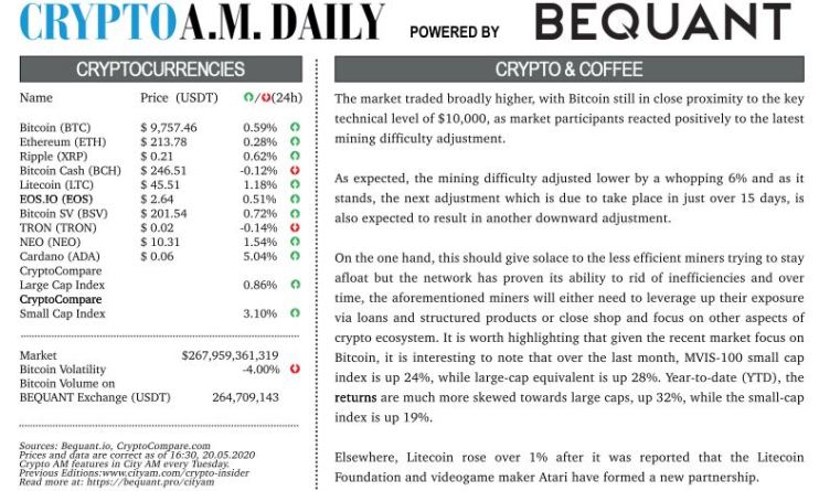 Thursday 21 May 2020 9:06 am | Updated: Friday 05 November 2021 4:46 pm Crypto Daily – May 21, 2020 By: Crypto AM Daily in association with BEQUANT Share Facebook Share on Facebook X Share on Twitter LinkedIn Share on LinkedIn WhatsApp Share on WhatsApp Email Share on Email Download PDF News Updates Stay ahead with our three daily briefings delivering all the key market moves, top business and political stories, and incisive analysis straight to your inbox.