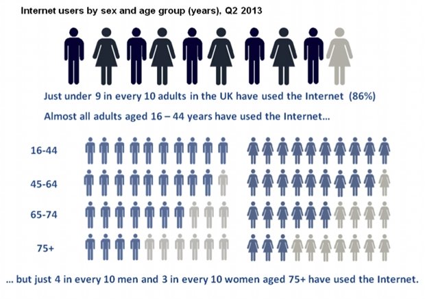 As of the second quarter of 2013, 14 per cent of UK adults, or 7.1m people, had never used the internet, according to the latest data from the Office for National Statistics (release).
