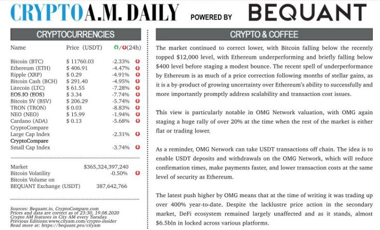 Friday 21 August 2020 9:12 am | Updated: Friday 05 November 2021 4:10 pm Crypto Daily – August 21, 2020 By: Crypto AM Daily in association with BEQUANT Share Facebook Share on Facebook X Share on Twitter LinkedIn Share on LinkedIn WhatsApp Share on WhatsApp Email Share on Email Download PDF News Updates Stay ahead with our three daily briefings delivering all the key market moves, top business and political stories, and incisive analysis straight to your inbox.