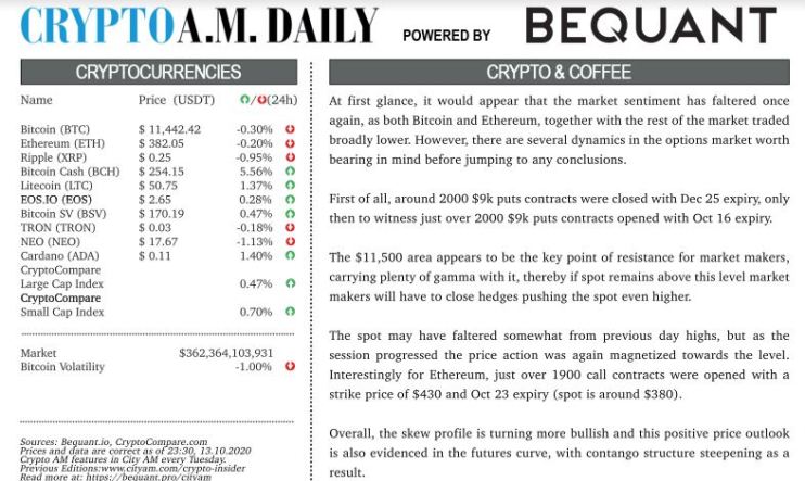 Wednesday 14 October 2020 10:44 am | Updated: Friday 05 November 2021 3:55 pm Crypto Daily – October 14, 2020 By: Crypto AM Daily in association with BEQUANT Share Facebook Share on Facebook X Share on Twitter LinkedIn Share on LinkedIn WhatsApp Share on WhatsApp Email Share on Email Download PDF News Updates Stay ahead with our three daily briefings delivering all the key market moves, top business and political stories, and incisive analysis straight to your inbox.
