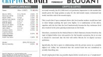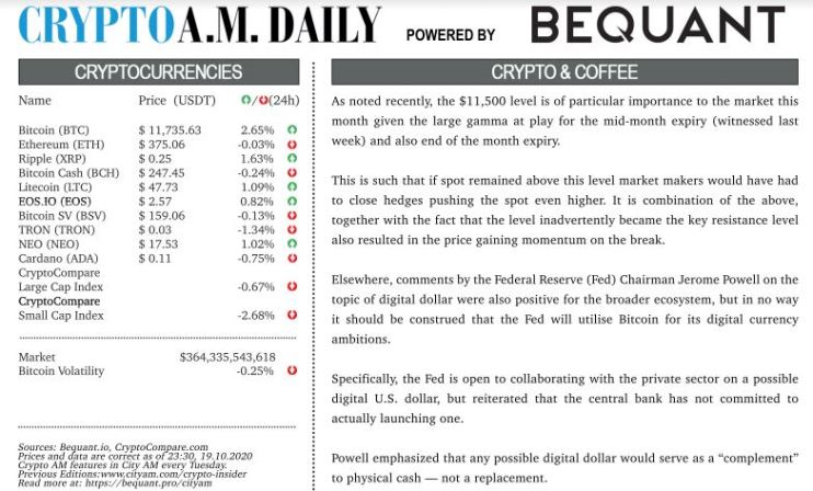 Tuesday 20 October 2020 2:40 pm | Updated: Friday 05 November 2021 3:56 pm Crypto Daily – October 20, 2020 By: Crypto AM Daily in association with BEQUANT Share Facebook Share on Facebook X Share on Twitter LinkedIn Share on LinkedIn WhatsApp Share on WhatsApp Email Share on Email Download PDF News Updates Stay ahead with our three daily briefings delivering all the key market moves, top business and political stories, and incisive analysis straight to your inbox.
