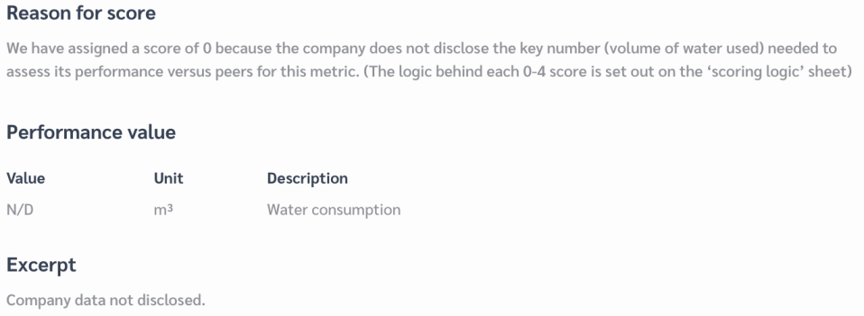 Nevertheless, their report and website lack specific policies addressing water consumption risks, and they do not disclose quantitative figures on the volume of water used.