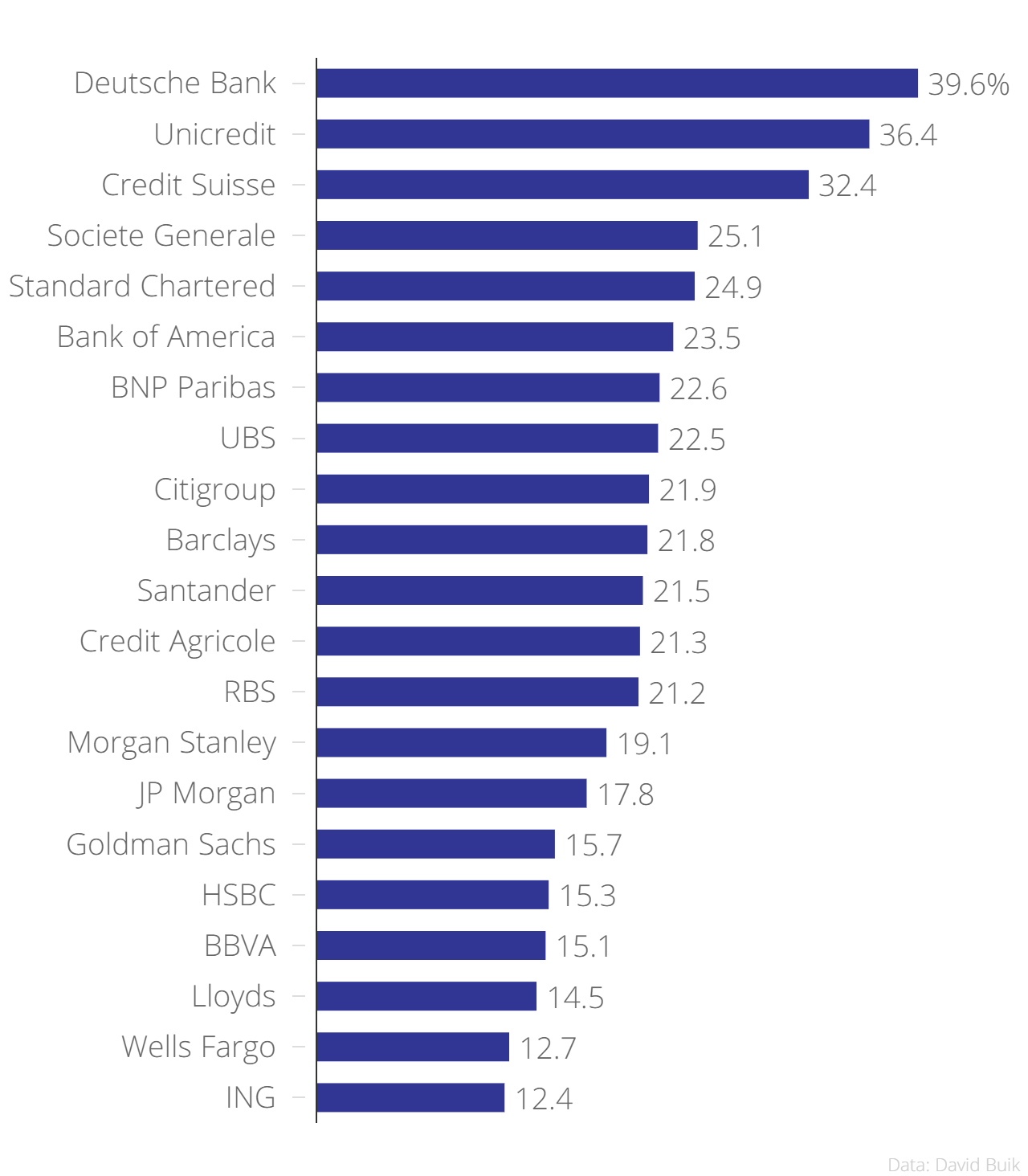 From Deutsche Bank to Credit Suisse and RBS: This chart shows exactly how much global banks’ share prices have fallen this year