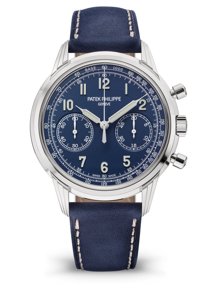 Few brands say ‘quality’ quite like Patek Philippe, but even by that brand’s sky-high standards, this watch is a real stunner. The manual winding chronograph comes in a white gold case with gilloched pushers and three-tier lugs. But it’s the wide, confident blue dial that really gets our hearts racing – something that’s wonderfully complimented by the hand stitched navy blue calfskin strap.