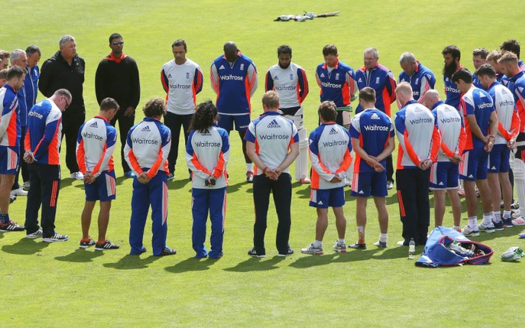The England cricket squad also held a moment's silence as they held a practice session ahead of the start of the Ashes Test match tomorrow.