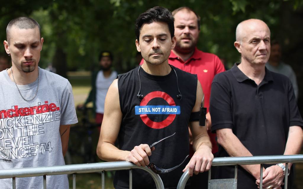 Paul Crowther, chief constable of the British Transport Police; Adrian Leppard, commissioner of the City of London Police; and Sir Bernard Hogan-Howe, commissioner of the Metropolitan Police also lay wreaths at the Hyde Park memorial, where hundreds of Londoners congregated to show their respects to the 52 people who died in the attack and the hundreds who were injured.