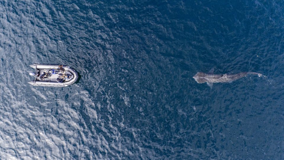 In the distance to the right of us, the two fins of an 8-metre basking shark wobble gently from side to side as the extraordinary creature gorges on krill. To the left, coming closer, the tell-tale splash of a school of bottlenose dolphins doing what they do best – having what appears to be a ludicrous amount of fun.