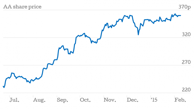But although the AA's share price fell 2.4 per cent on its first day of trading in June, since then shares have steadily risen, from a low of 231p to 362p now.