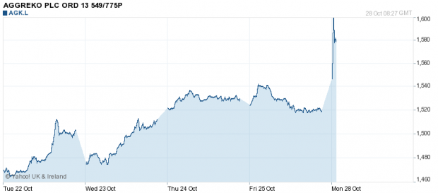 Aggreko topped the FTSE100 this morning as shares spiked after the company announced its third quarter trading was in line with expectations, with revenues up on the same period last year. (Release)