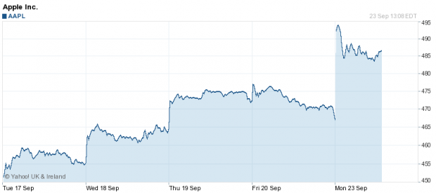 Now the company expects revenue for the fourth fiscal quarter near the high end of its $34-£37bn (£21.2-23bn) range. Apple shares have risen by over four per cent on the good news.