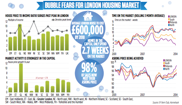 “House prices across most of the country remain well below their pre-crisis peaks and there seems little danger of a bubble developing. But London, which is suffering from a combination of strong demand and a lack of supply, is increasingly giving us cause for concern,” said Item Club senior economic adviser Andrew Goodwin.