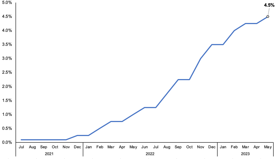 Since December 2021, Bank Governor Andrew Bailey and co have lifted borrowing costs 440 basis points, the most aggressive rate rise cycle since the 1980s.