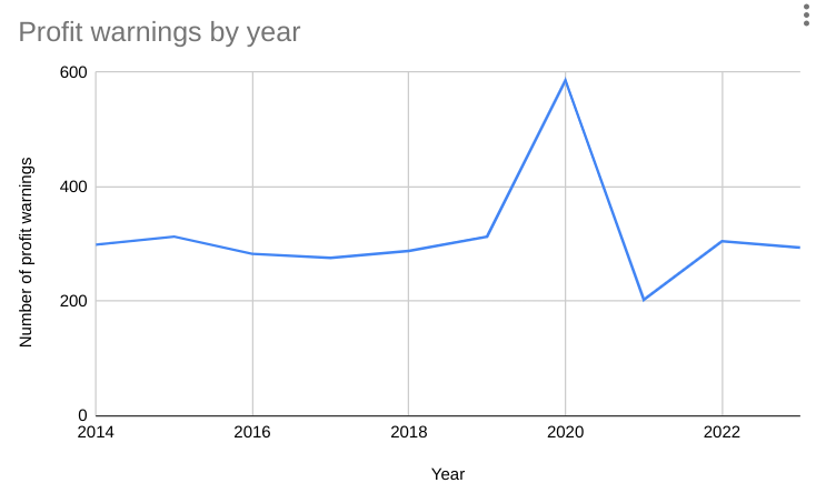 This meant that 2023 saw more profit warnings than at the peak of the financial crisis, although it was roughly in line with the average over the past decade.