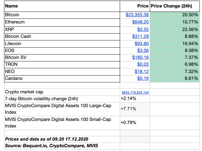 Bitcoin finally pierced its way through the key $20,000 level and more important for the longevity of the uptrend, the break did not result in an aggressive trigger of stops. Instead, the break was well managed and steady. The subsequent price action was equally steady, even if somewhat one directional and by early Thursday morning, Bitcoin was trading just shy of $23,000 level.