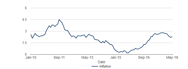 The rise and fall and rise again of UK inflation Jan 2010 – May 2018