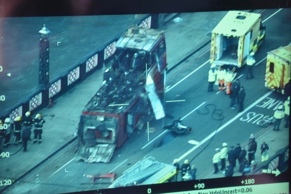 The moment the double decker exploded as part of a stunt in the film was caught on camera by Lambeth Fire Brigade.
