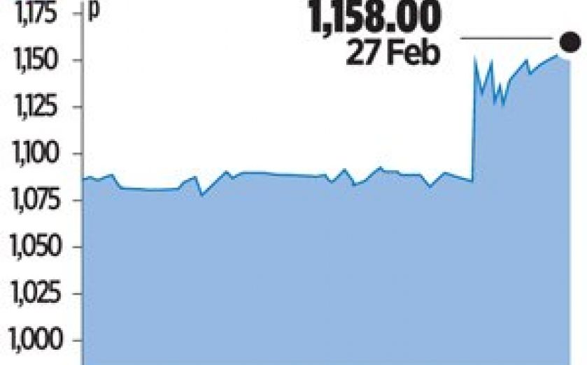 The FTSE 100-quoted company posted a 15 per cent rise in underlying revenue to £3.85bn and pre-tax profits of £475m in 2013. Shares rose over four per cent in the morning, before closing up 6.7 per cent.