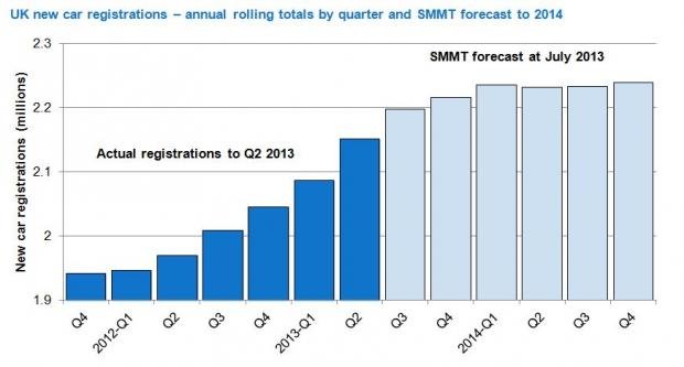 The SMMT has hiked it forecast for 2013 car registrations to 2.216m units, up 8.4 per cent from last year.