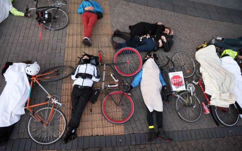 Below is a map of every collision in London involving a cyclist in 2013. Read the full article here. Yellow dots are slight injuries, orange dots are serious accidents and dark red dots show where cyclists were killed.