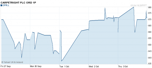 Carpetright which has close to 500 stores across the UK, reported on Friday that sales were down 2.5 per cent in the UK and 7.6 per cent in Europe, over the 10 weeks to the end of September.
