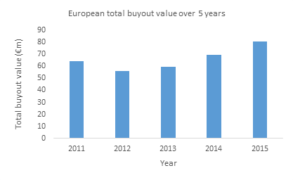The research shows that since 2013, the value of private equity deals in Europe has increased by about €10bn each year.