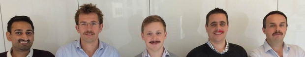 Well, the day you've all been waiting for has come – it's the day of judgement for our City Mo Bro competition. Put down your tash wax, put away the combs – the winner is Steven Farley (second from the right, below) of Majedie Asset Management. We would like to particularly commend Steven's use of dye – according to his colleagues he was going for a red, white and blue look – as it turns out we can only really make out red and er, white-ish, but two out of three isn't bad.