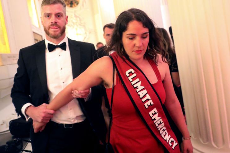 While Hammond spoke, Greenpeace protestors burst into Mansion House in an attempt to bring attention to the issue of climate change.