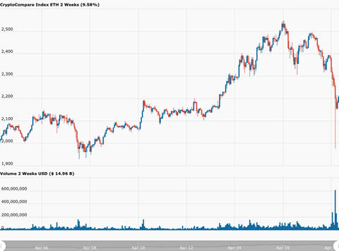 However, many altcoins continued rallying, led by Ethereum, which recorded a new all-time high of $2,547 on Friday (April 16).
