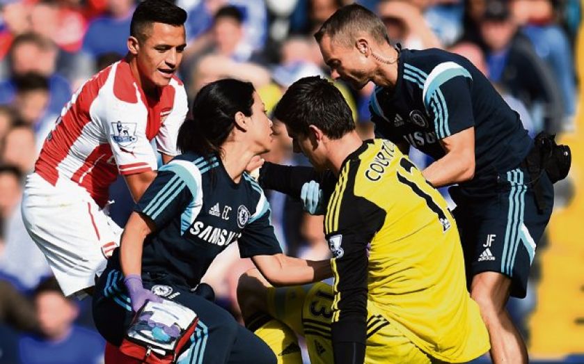 Chelsea doctors examined Courtois after he received an accidental blow to the right of the head from Sanchez’s hip, having rushed off his line to thwart the Chile star. He was allowed to play on but then substituted in the 23rd minute, seemingly bleeding from his right ear area, and sent to hospital to undergo further tests.