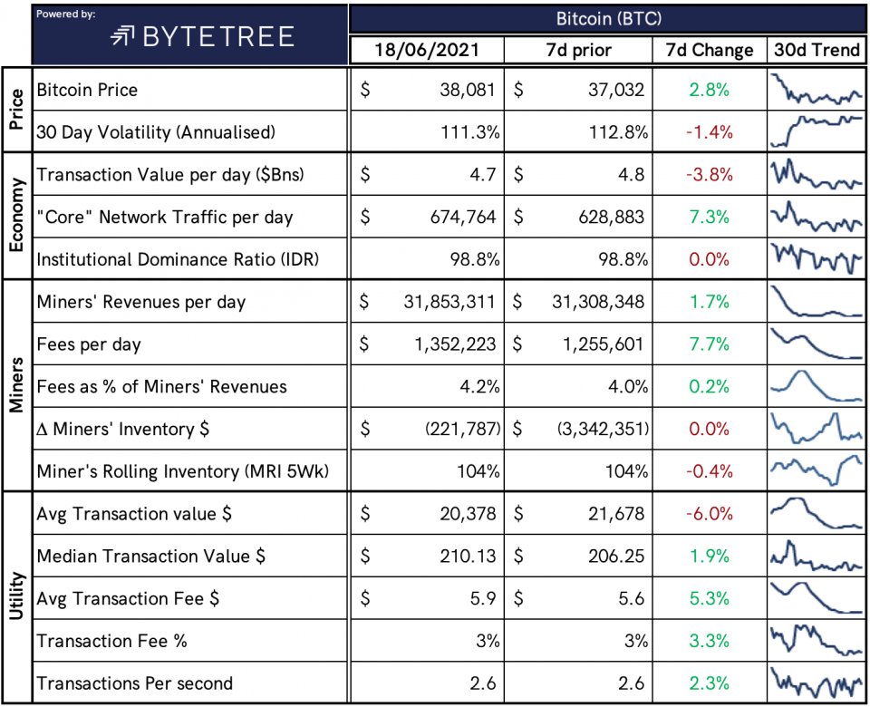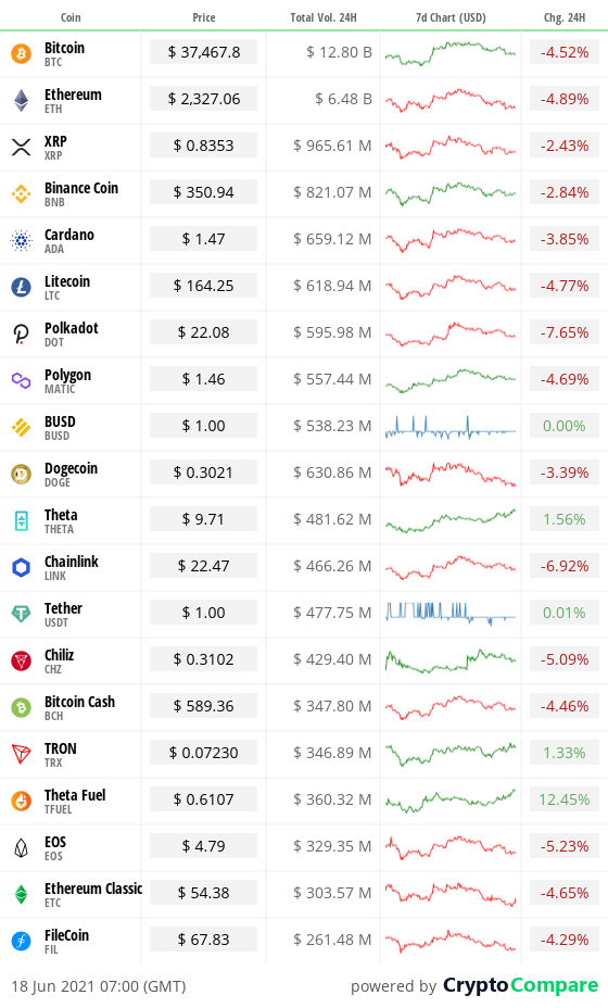 We closed yesterday, 17 June, 2021, at a price of $38,053.50, down from $38,347.06, the day before.