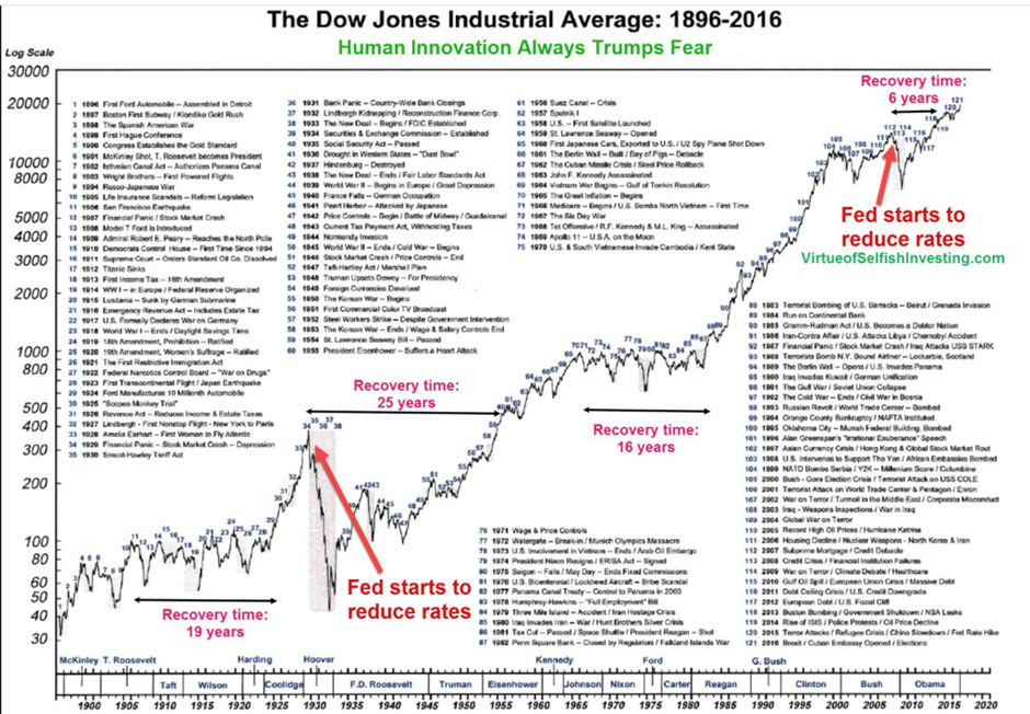 In both cases, the Fed hiked rates too far so had to quickly reduce rates. Despite this, massive bubbles had formed much like the one we are in today so had to be unwound, resulting in two of the deepest and prolonged bear markets for the major averages.
