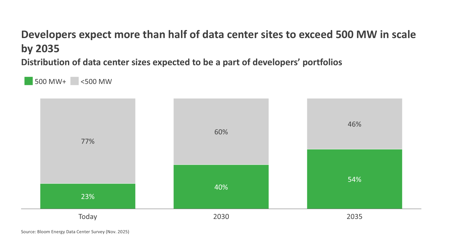 The 2026 Bloom Energy Data Center Power report is based on surveys commissioned via a double-blind process between Bloom Energy and respondents. Surveys were conducted in November 2025 with 152 decision-makers across the data center power ecosystem, reflecting perspectives from hyperscalers, colocation developers, utilities, and GPU service providers. Interviews were also conducted with industry leaders to pressure test findings and assess real-world implications. Download a copy of the report here.
