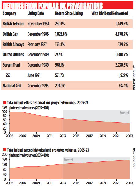 IN THE biggest privatisation since the 1980s, the government plans to sell a majority stake in Royal Mail. Analysts are divided over the attractiveness of the stock – with key details such as share price yet to be finalised – but most expect demand to be high and the sale comfortably over- subscribed.
