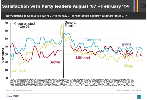 While the 2015 election is still months away, party insiders may want to take note of a recent poll by Ipsos MORI, which charts satisfaction with their leaders among the electorate.