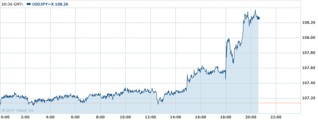 Dollar jumps against Euro and Yen to 2014 highs after Fed committ to low interest rates