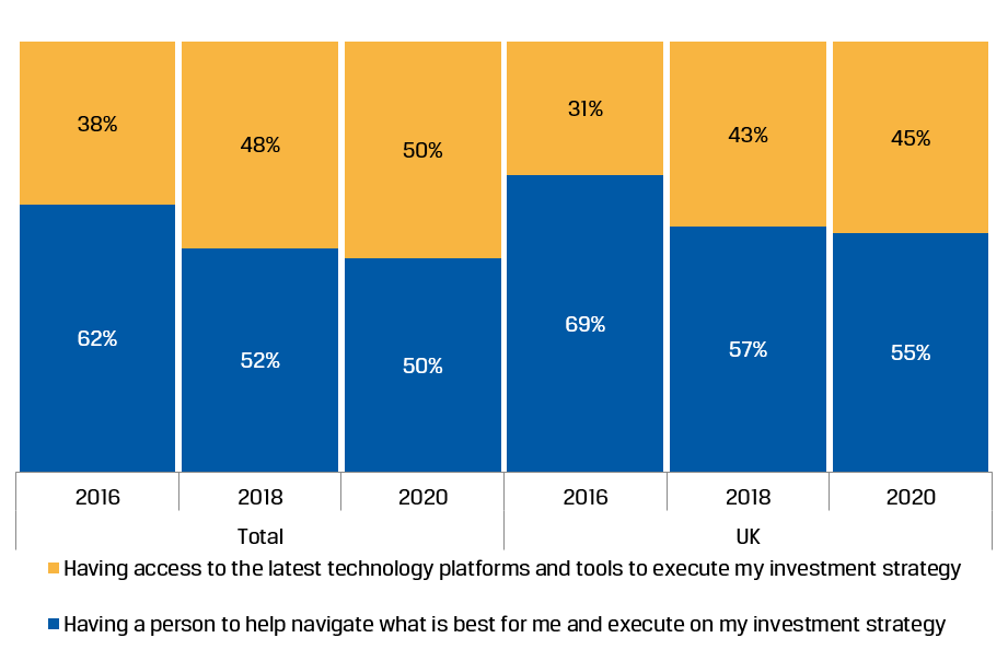 However, more than three quarters of UK retail investors still trust advice from a person over advice from a machine; and having access to the latest investment technology is increasingly expected to matter to investors in the coming three years.