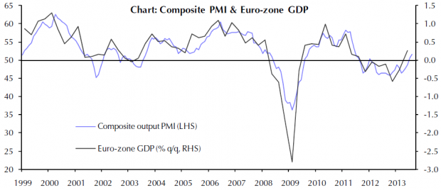 With confirmation that the Eurozone has finally emerged from its six quarter recession, posting 0.3 per cent GDP growth in the second quarter, economists now expect the area to move back towards more impressive growth figures.