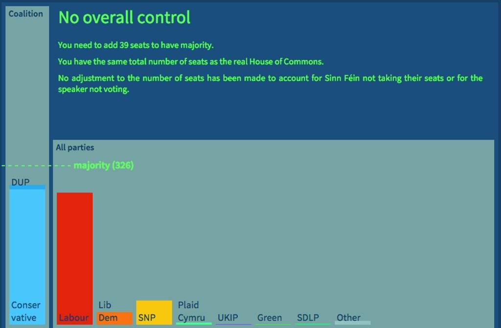The party leaders may have done a good job of ignoring anyone who mentions the C-word, but the rest of us know it’s more than likely and we’ve been doing the sums. 326 is the number of seats a party needs to form a majority in the House. Which parties combined add up to the magic number? Try it yourself using the interactive tool on coalitionbuilder.co.uk, which updates seat predictions using data from the latest polls.