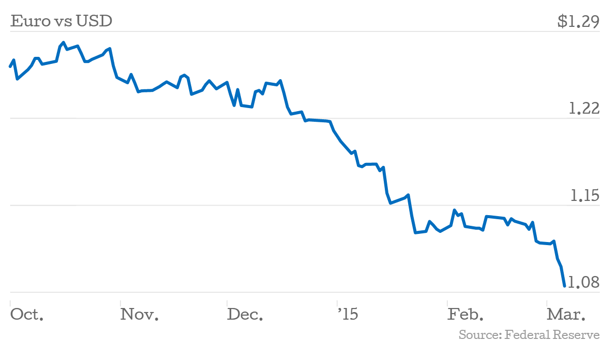 Euro loses one per cent against the dollar as markets feel the impact of quantitative easing