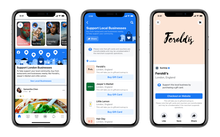 Facebook and Instagram users will now be able to support local businesses during the Covid-19 crisis by purchasing digital gift cards on the social media platforms.