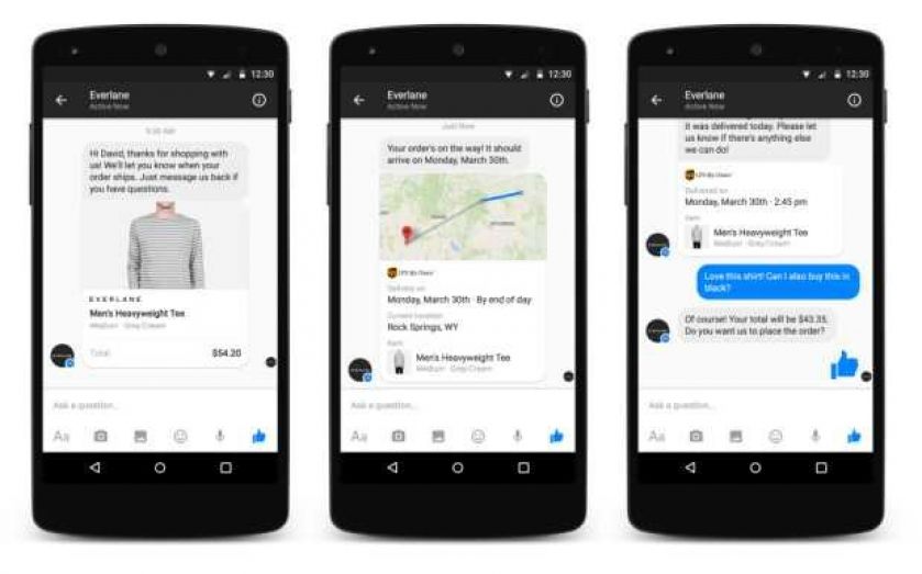 People can have rich and personal conversations with businesses. For example, after purchasing something from a website, people can choose to receive updates in Messenger and continue their conversation with the business in the app.