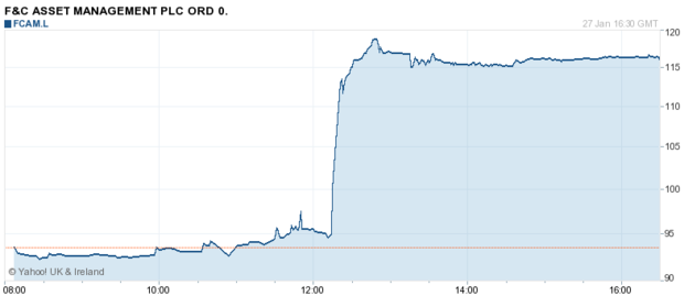F&C asset management has confirmed press reports from FT Alphaville of a 120p cash bid from Canadian Bank of Montreal (BMO). Current shareholders would also be entitled to a 2p dividend.