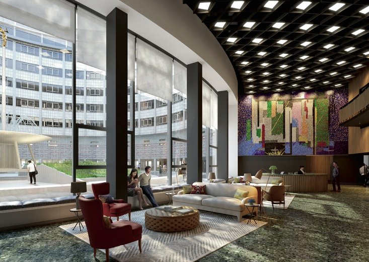 A CGI of the finished reception with John Piper's restored mural