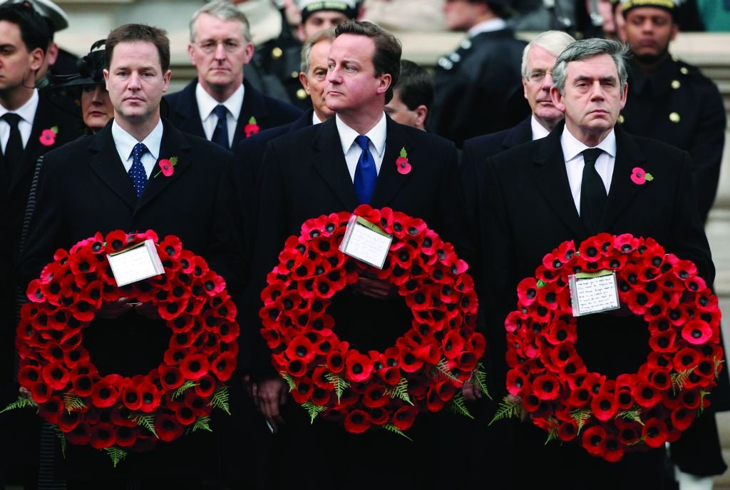 The Lib Dems begin the tricky process of consulting the key groups in their party, who must agree to any deal. They also listen to Labour’s offer. Discussions are interrupted as the three party leaders all attend the Cenotaph to lay a poppy wreath.