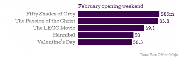 Yet with its risque subject matter few would have foreseen the biggest opening weekend of all time for both a film defined as romantic drama and film released in February.