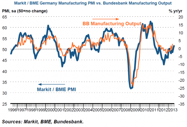 Overall, the latest figures provide a strong indication that manufacturing output will have a positive contribution to German GDP in the third quarter of 2013.