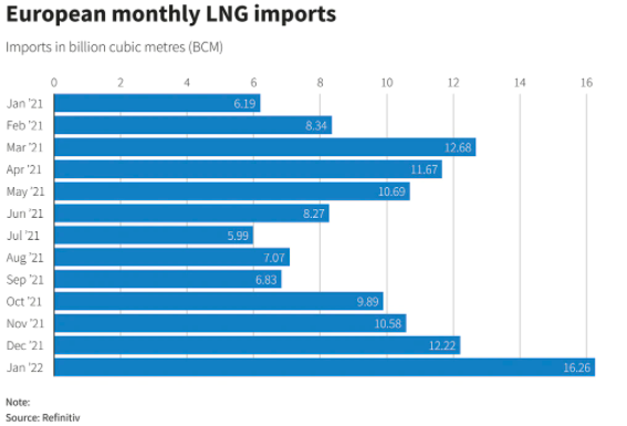 Europe has instead staved off blackouts this winter, and met rebounding consumer demand from the pandemic courtesy of LNG imports.