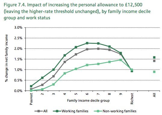 Taking minimum wage workers out of tax is a way of giving workers a ‘Living Wage’ without risking jobs. The difference between the Living Wage and the minimum wage is entirely tax – if we stopped taxing minimum wage workers, they would earn the equivalent to a post-tax Living Wage.