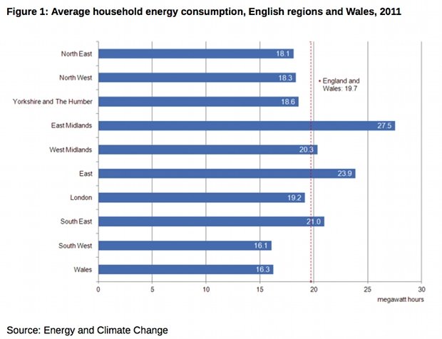 Energy consumption fell by 24.7 per cent over the period. There was significant regional variation, with the East Midlands posting the highest consumption every year measured.